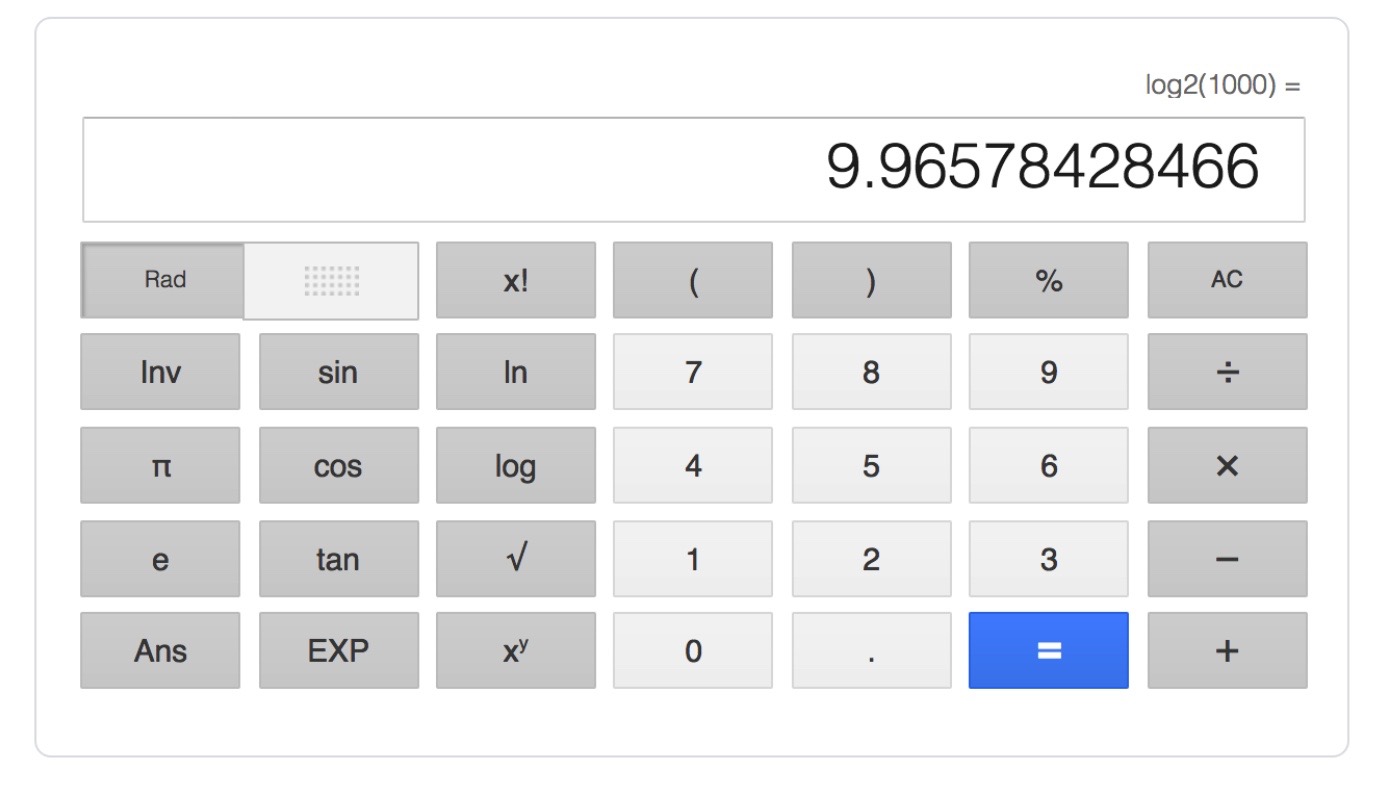 The best part here is that we can keep using this calculator to find out how many operations will be needed if we have a million records (itâs 20) or a billion (itâs 30). That kind of scaling as our inputs goes up is the stuff of DBA dreams.